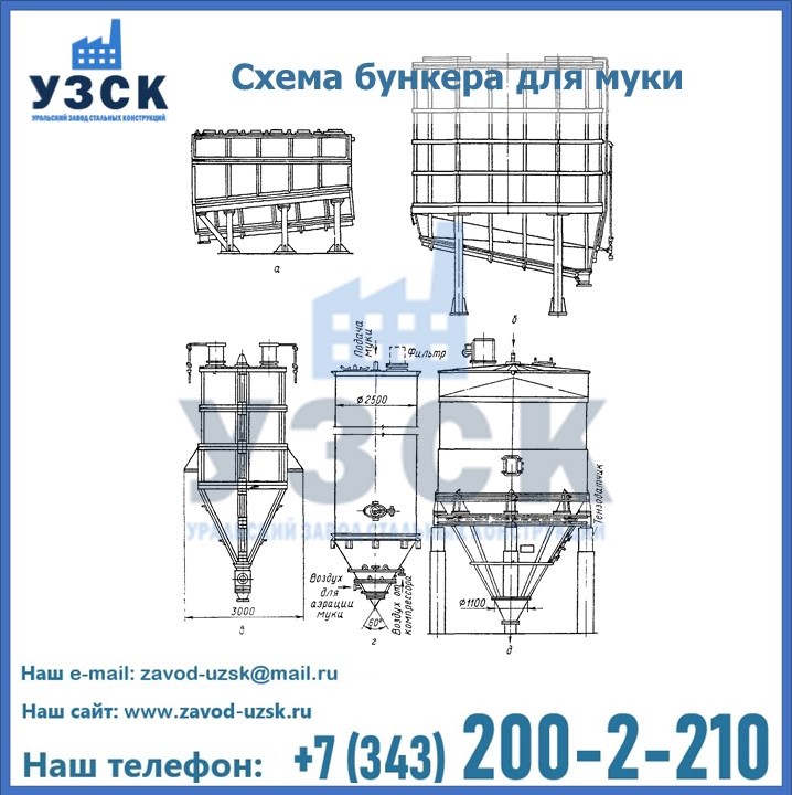 Завод «УЗСК» в Каспийске осуществляет проектирование, производство и продажу бункеров для муки. Всю информацию, касающуюся производства, реализации и установки емкостного оборудования можно узнать на нашем сайте или по телефонам, указанным в разделе «КОНТАКТЫ».