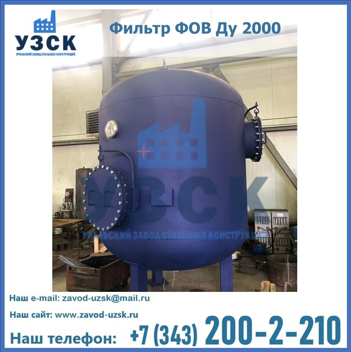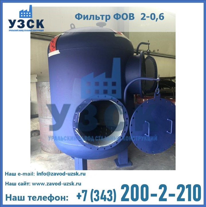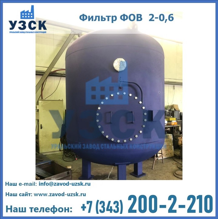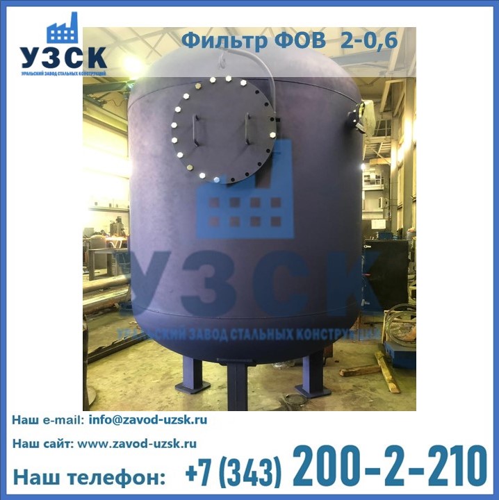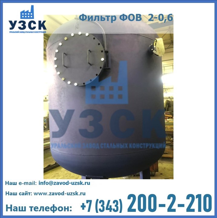 Удаление взвешенных веществ различного уровня дисперсности из рабочих жидкостей эффективно проводит фильтр осветлительный типа ФОВ (скорый или механический) — вертикально-цилиндрической формы установка, разработанная для систем водоподготовки различного класса. Оборудование представляет собой однокамерный агрегат для очистки воды рекомендованный для применения на станциях очистки стоков, в коммунальных котельных, на ТЭЦ, в промышленных отопительных системах и пр. Заказать производство ФОВ фильтров предлагает наш Уральский завод стальных конструкций в Каспийске. У нас можно купить фильтрационное оборудование различного класса и типа, в том числе фильтры ФОВ из нержавеющей стали.