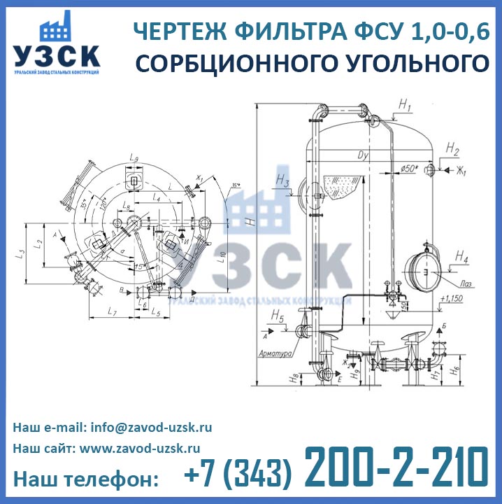 Наш завод (Уральский завод стальных конструкций) является производителем угольных фильтров, сам осуществляет изготовление и реализацию выпускаемой продукции. Приобретая фильтры ФСУ-1.0-0.6 в Каспийске от производителя, Вы приобретаете оборудование без наценок всевозможных посредников, а также значительно экономите свое время. Фильтры ФСУ1.0-0.6 завода УЗСК – это гарантия качества, кратчайшие сроки изготовления и цена, которая Вам понравится.