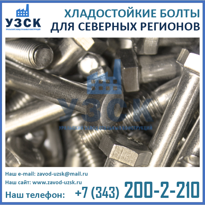 Уральский Завод Стальных Конструкций – непосредственный производитель хладостойкого крепежа. У нас Вы можете купить болты для севера в различных конструктивных исполнениях: